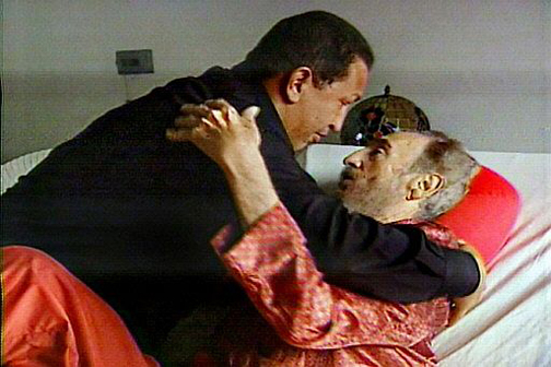 | No me digas que no te acuerdas, porque yo sí: Castro prodigando el doble abrazo —cuatro dosis en realidad; dos al llegar, dos al partir—. Te abrazo por la derecha, te abrazo por la izquierda y, como el Viejo Jotavich que se arrancaba un pelo de la barba... ¡puaf!, te incinero, coño. Miren si no: Brezhniev —que gustaba según la tradición rusa de besar a Castro con aliento a salchicha y todo— Khruschev, Ceausescu, Gierek, Husak, Kadar, Zhivkov, Honecker, Ben Bella, Boumédiène, Torrijos, Allende, Gorbachev, Bishop, Zamora Machel, Neto, Sekou Turé, Pham Van Dong, Kim Il Sun … La lista es más larga. Pero el caso es que como el Ángel Negro, a quien Castro abraza, tarde o temprano… caramba, se jode. Y la víctima más reciente en el fatal inventario del abrazo exterminador de "El Ángel Negro" de La Habana es Hugo Chávez. ¿Cuántos estrechones le ha dado Castro a Chávez? No lo sabemos con precisión, pero… hmmm, podemos calcular: tantos como la cantidad de radiaciones que el mandatario venezolano necesite. Que el efecto devastador del abrazo de alto voltaje es acumulativo. ¡Siá, cará… pa’ llá, pa’ llá..! Fuente: http://www.ifriedegg.com |